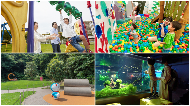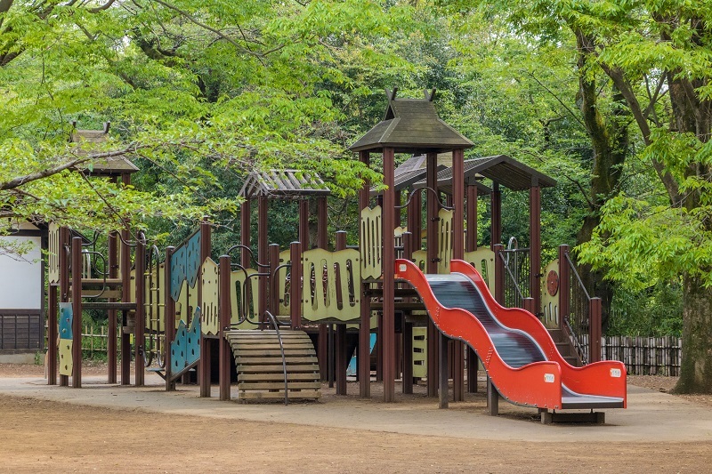 東口ビジターセンターや日本民家園、科学館、美術館などの施設があり、授乳室やお子様トイレも完備。芝生広場や複合遊具、アスレチックなどもあり、家族で一日中遊べるスポットです。