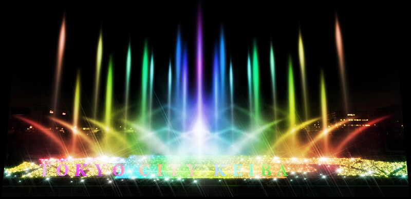 競馬場のコース内を舞台に繰り広げられる「虹色に輝く光の大噴水」は、「東京メガイルミ」最大のスペクタクルです。