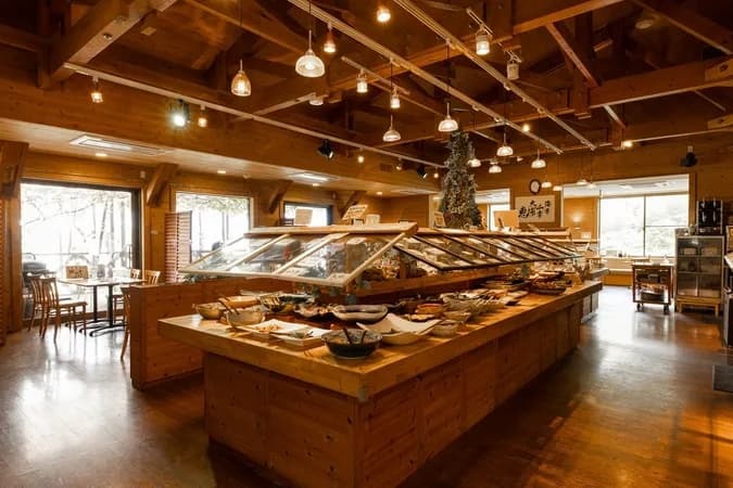 ・約80〜100種類の自然食メニューが楽しめる「農村レストランふるる」があります
