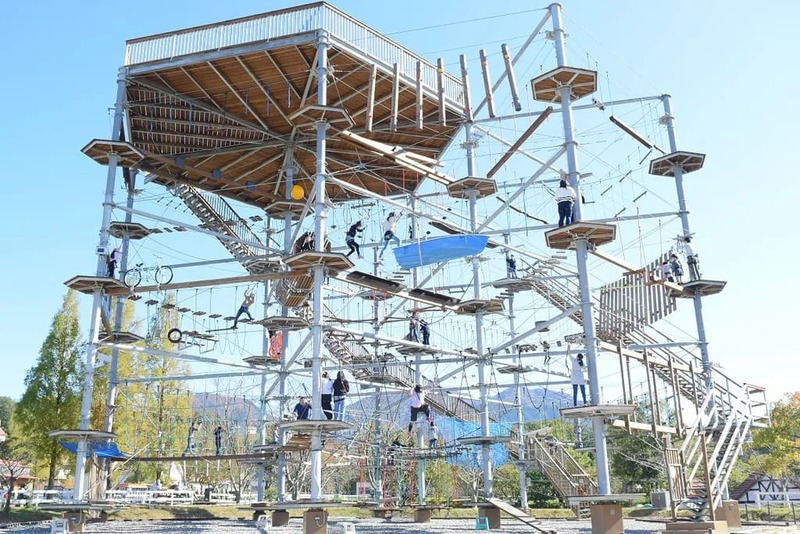 園内には、ウサギやアルパカ、カンガルーとのふれあいや、ソーセージ作りなどの体験教室、高さ17mの巨大アスレチック施設など、楽しいアクティビティが充実!