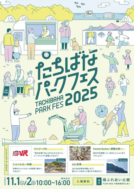 イベントは10時から16時まで開催され、雨天でも決行されます。香取市最大の総合公園である橘ふれあい公園で、秋の一日を親子で満喫してみてはいかがでしょうか。