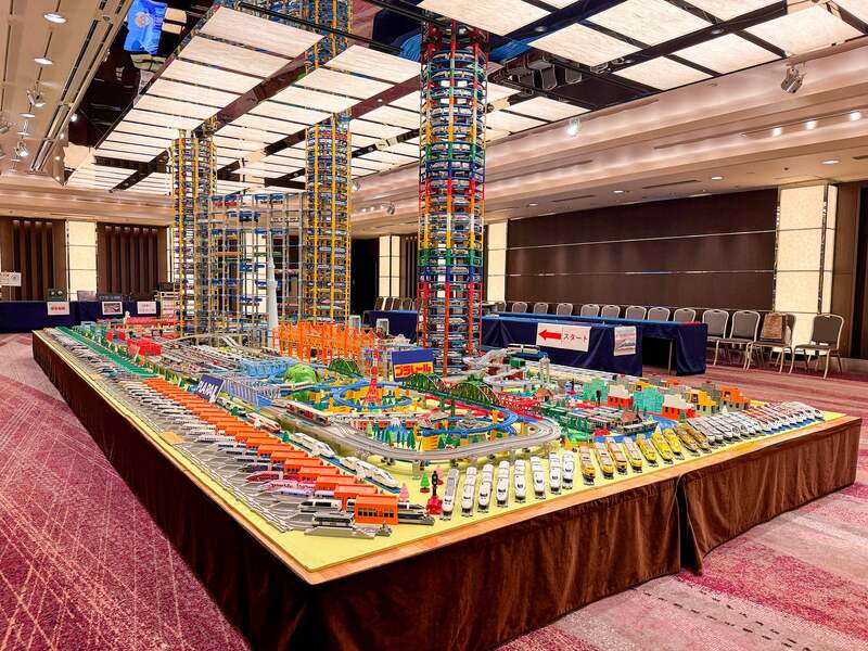 会場内には長さ7.2m×幅3.6mの巨大なプラレールジオラマが展示され、緻密ながらも迫力ある走行を間近で見ることができます。