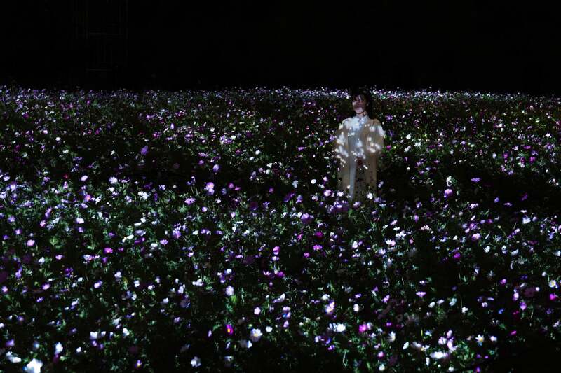 《生命は闇に浮かぶまたたく光 - コスモス》では、闇の中で咲き、輝くコスモスを楽しむことができます。