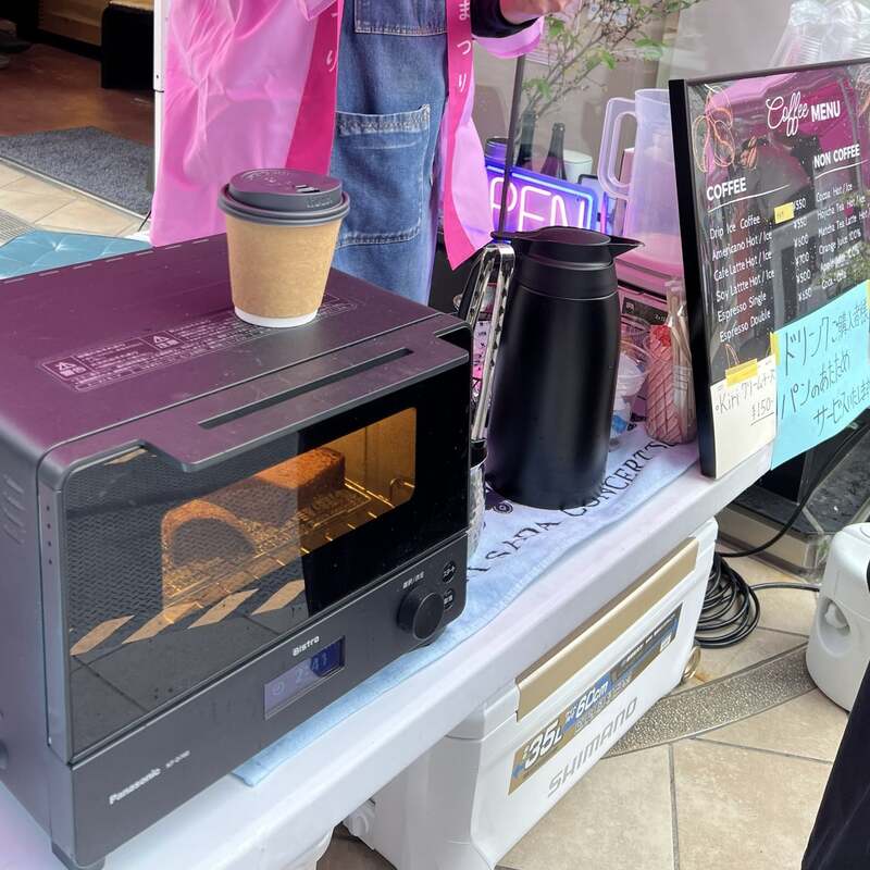 併設テントでは、カタラタスボトルショップがコーヒーやビール、スープを販売。トースターも完備しており、ドリンクを購入した方にはパンのあたためサービスも提供されます。