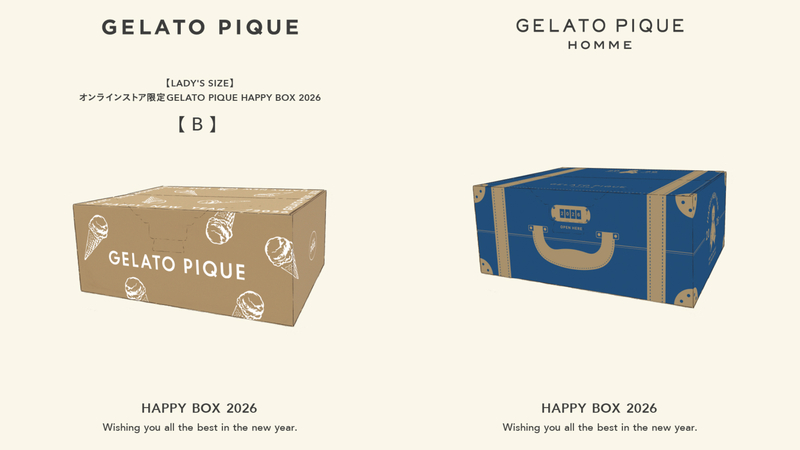 "大人のデザート"をコンセプトに、着心地にこだわったルームウェアを提案する「gelato pique」から、毎年大好評の福袋「HAPPY BOX 2026」(3種類)が今年も登場です。