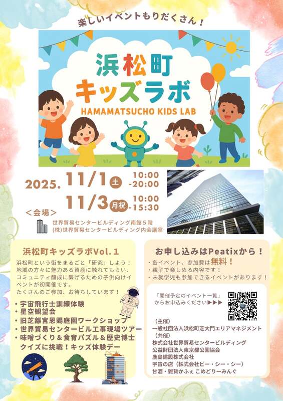 東京都港区浜松町の世界貿易センタービルディング南館で、2025年11月1日(土)・3日(月・祝)に「浜松町キッズラボ」が初開催されます。