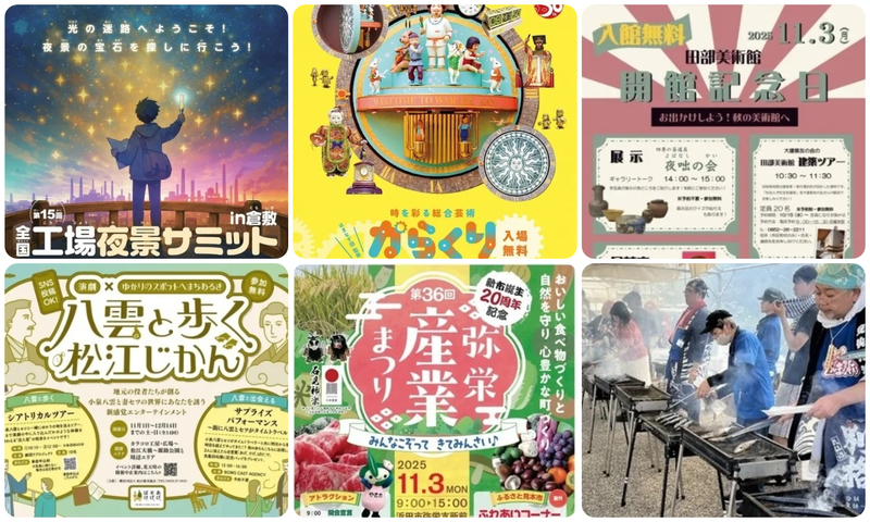 「文化の日」を含む、2025年11月1日(土)・2日(日)・3日(月・祝)の三連休に、広島県をはじめ中国地方で開催される無料&予約不要のイベントをご紹介しました。