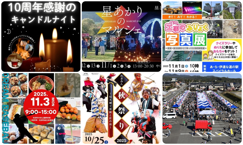 キャンドルが灯る幻想的なイベントや、地元の人たちでにぎわう秋祭り、元プロ野球選手が登場するスポーツイベントなど、大人も子供も楽しめるイベントがたくさん開催されますので、「文化の日」を含む、2025年11月1日(土)・2日(日)・3日(月・祝)の三連休も家族でおでかけを楽しんでくださいね!