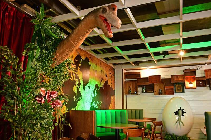 20体以上の恐竜が店内外を"占拠"する迫力あるレストランで、恐竜をイメージしたユニークなメニューが楽しめます。