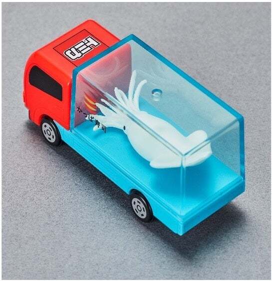 第1弾となる今回は、新鮮なイカを運ぶ『トラック(暗いところで光るいか)』が登場します。荷台の水槽に入ったイカは、光をあてておくと暗いところで光るサプライズギミック付きです。