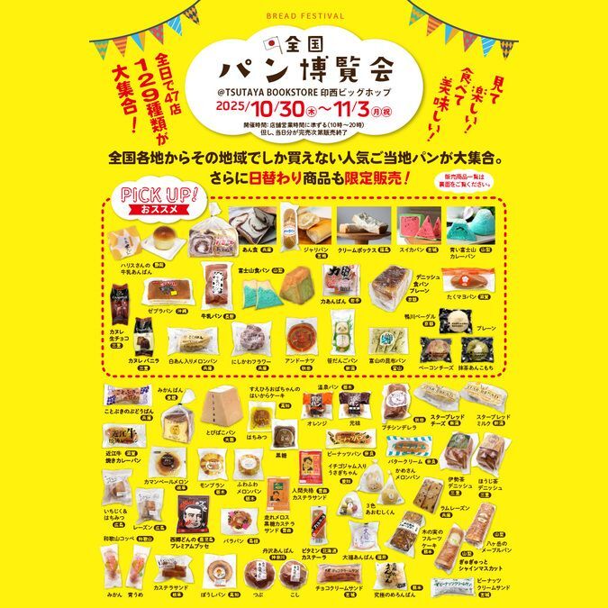 千葉県印西市の「TSUTAYA BOOKSTORE印西ビッグホップ」では、2025年11月3日(月・祝)まで、「全国パン博覧会」が開催されます。