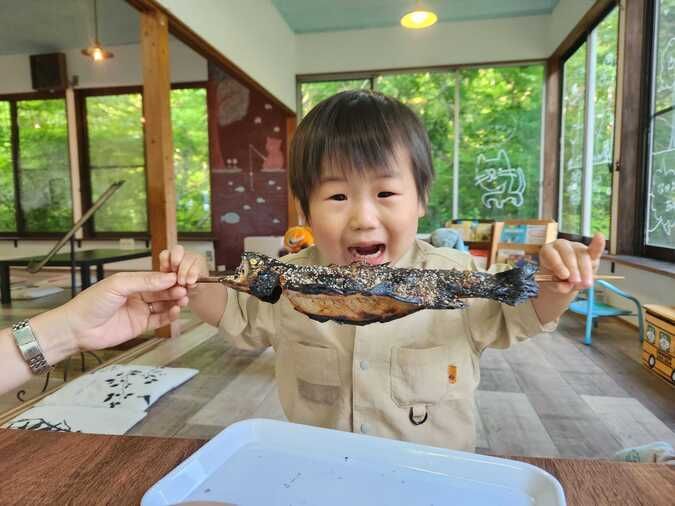 蔵王の自然の池で、イワナやニジマスなどの魚釣りを楽しめる「釣り堀カフェ・クローバー」。子供料金は980円から、釣った魚はその場で調理できます。