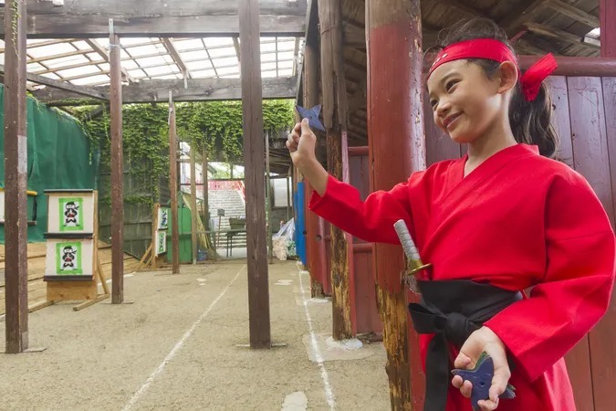 関所や忍者屋敷など約40の施設が点在し、街道では大道芸や忍者ショーが楽しめます。手裏剣打ちや吹き矢などの忍者体験もでき、親子で江戸時代の雰囲気を満喫できるスポットです。