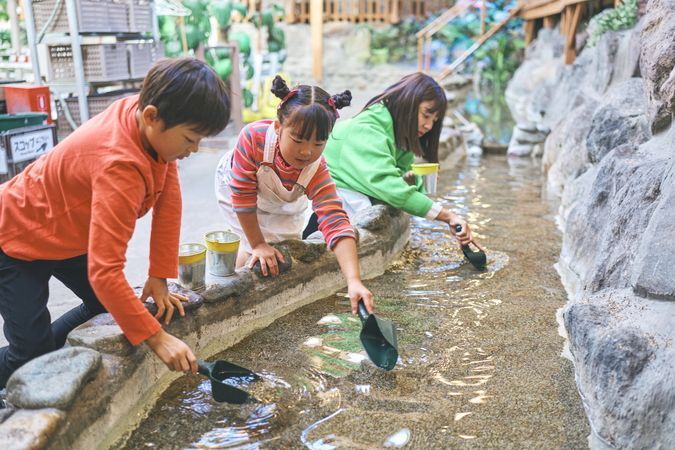屋根付き施設なので雨でも遊べ、水晶やアメジストなどのパワーストーンが制限時間内に取り放題!