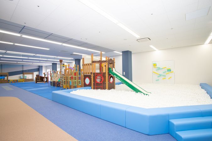 ボールプールやエア遊具などの「動の遊びコーナー」と、ままごとや絵本などの「静の遊びコーナー」があり、創造性と主体性を育むおもちゃと遊具が揃っています。