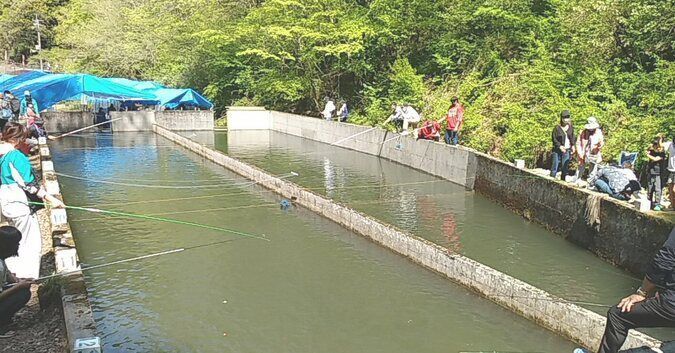 「帝釈峡水辺公園」では、親子で楽しめる釣りや塩焼き、流しそうめんなどの体験ができます。