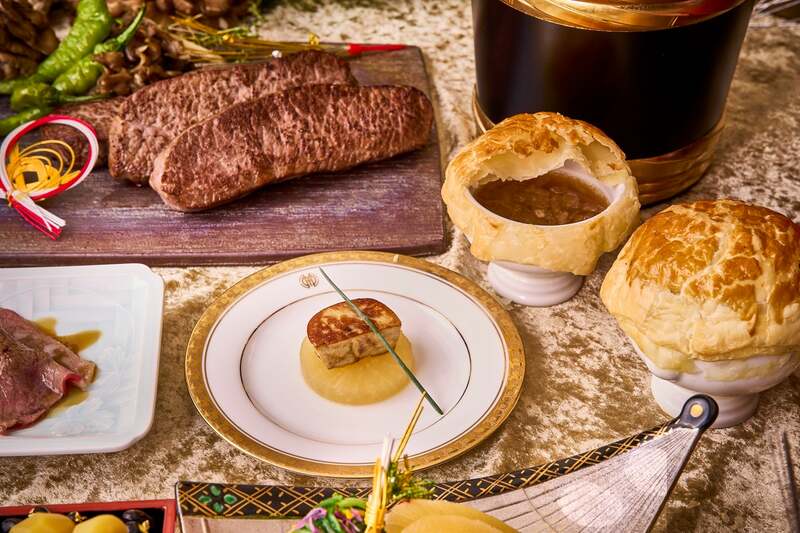会場では、新春らしい祝い料理や、握り寿司、天婦羅などの和食に加え、骨付き牛もも肉のローストやオムライスなどの洋食まで、バラエティ豊かなメニューが揃います。