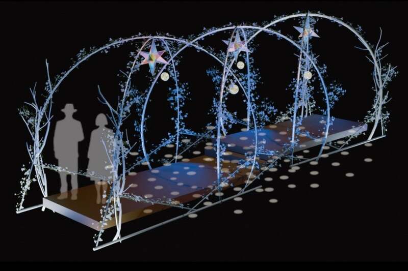 今年は入口に高さ3m、全長9mのトンネルが新登場します。ミラーボールの無数の光が煌めく光の道を通り抜けることで、一歩足を踏み入れた瞬間から幻想的な世界が広がります。