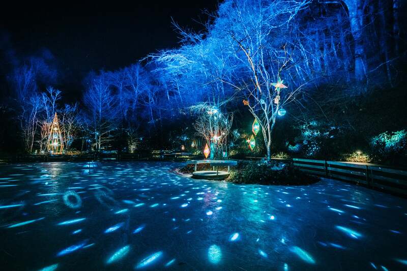 森の神秘をテーマにした幻想的な空間で、光り輝くスケート靴を履いて滑る特別な体験が楽しめます。