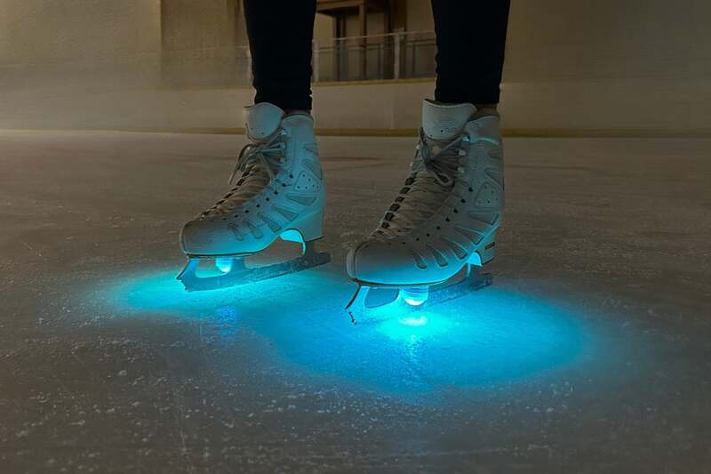 数量限定で、光るスケート靴「スターライトシューズ」をレンタルできます。滑るたびに靴が輝き、リンク全体を包む光の演出と融合することで、自分自身が幻想的な作品の一部になったかのような特別な体験を楽しめます。