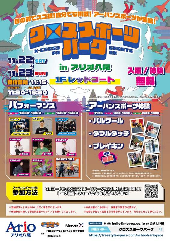 大阪府八尾市の「アリオ八尾」で、2025年11月22日(土)〜11月23日(日)の2日間、「クロススポーツパーク in アリオ八尾」が初開催されます。