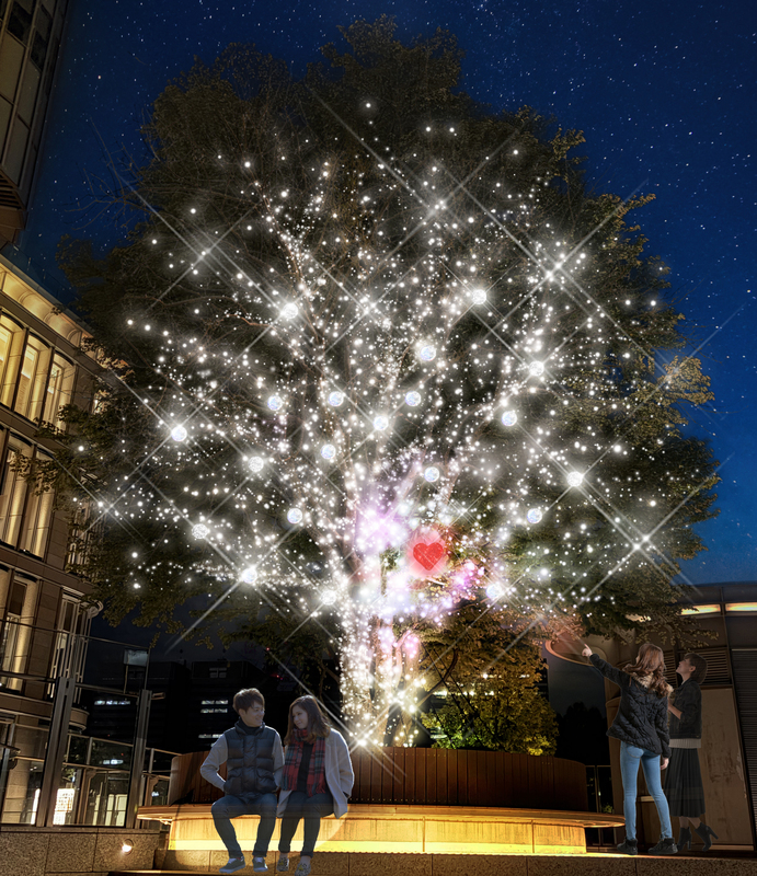 その周りには、キューブ型オブジェを使った「トゥインクリーイルミネーション」も施され、子供も大人も楽しめる光の空間になります。