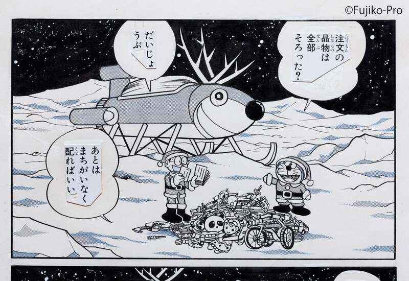 1階「展示室I」では、クリスマスにちなんだ『ドラえもん』のお話「サンタメール」を、1話丸ごと原画で読むことができます。展示期間は2025年11月1日(土)〜12月25日(木)です。