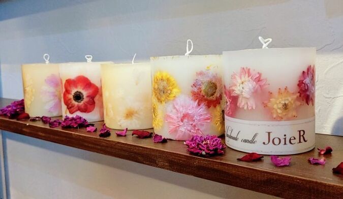 糸島市の「JoieR」では、地元で育った季節のお花を使ったキャンドルやサシェなどのハンドメイド作品を販売しています。