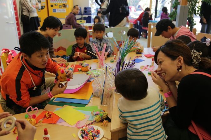 造形あそびやステンドグラス風の作品作り、妖怪の創作などのワークショップや、世界中の子供たちの作品展示を行っています。