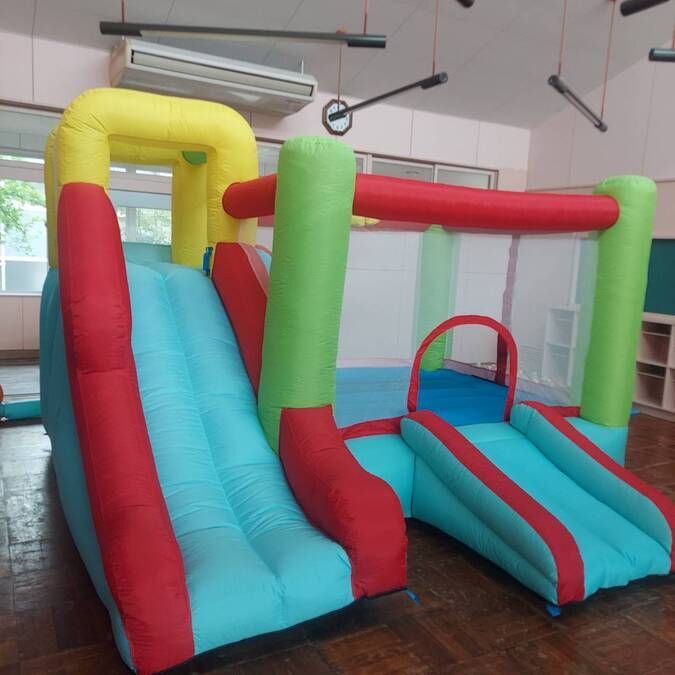 旧保育園を利用した室内外の遊び場「551ホール」。屋外には滑り台やブランコ、屋内には大型トランポリンやボールプールなどのキッズスペースがあり、オールシーズン楽しめます。