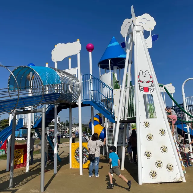 0歳から3歳児向けの遊具や、ふわふわドーム、複合遊具、じゃぶじゃぶスポットなど、子供が楽しめる施設が満載。防災トイレや防災あずまやも備わり、安心して遊べます。