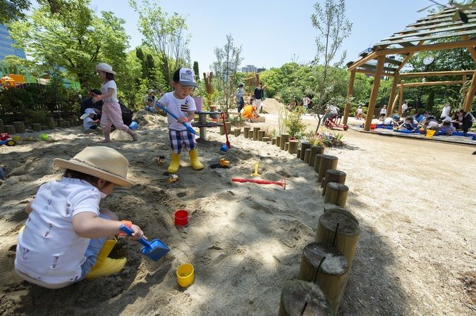 室内での体を使った遊びや表現遊び、屋外での自然をいかした遊びなど、年齢に合わせて充実した体験ができます。公園を利用する際はもちろん、観光で大阪を訪れたファミリーや、短時間で体験したい親子にもおすすめ。