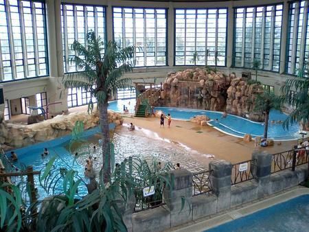大阪市営の通年型温水プール「鶴見緑地プール」は、洞窟や滝、ジャングルなどがモチーフのアミューズメントプールが楽しめる施設です。
