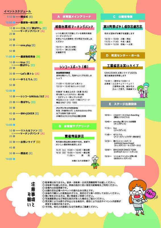 場所:さむかわ中央公園、シンコースポーツ寒川アリーナ(寒川総合体育館)、寒川町民センター(ホール)