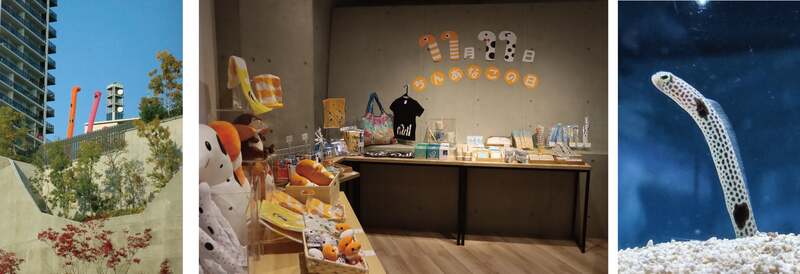 見どころは、屋上に登場する全長約8mの巨大チンアナゴ型エアーダンサー。そのほか、生きたチンアナゴの展示や、さまざまなグッズがそろう特設コーナーなど、まさにチンアナゴ尽くしの内容です。