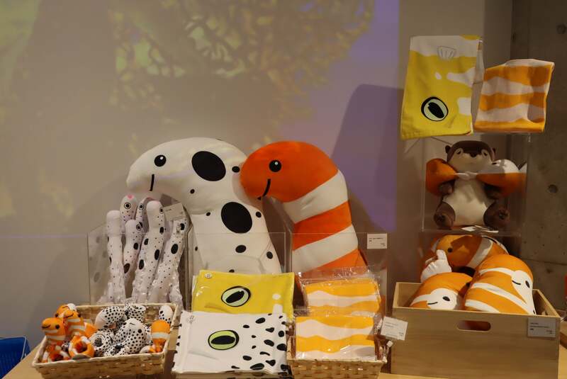 1階のミュージアムショップには、「チンアナゴの日」にあわせた特設コーナーが登場。定番のぬいぐるみから、日常使いできる文房具まで、さまざまなチンアナゴグッズがそろっています。