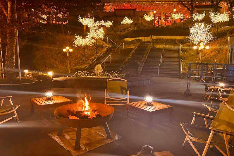 2025年12月20日(土)〜30日(火)の16:00から、夕日の縁日通りで「焚火喫茶」が実施されます。凍えた体を温めながら燃える薪の音に癒されるひとときを過ごせます。