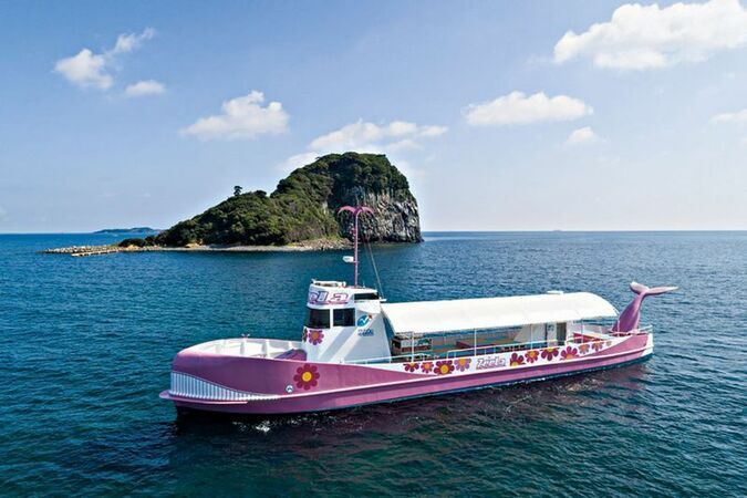 呼子の美しい海を楽しめる「マリンパル呼子」。北部九州初の半潜水型海中展望船「ジーラ」では、海中の生き物を船内から観察でき、デッキで潮風も満喫できます。