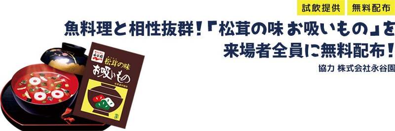 さらに、魚料理と相性抜群の永谷園「松茸の味お吸いもの」が来場者全員に無料配布されます。