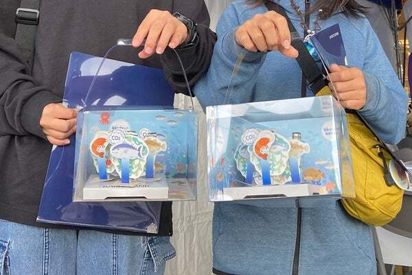 KAISO BANKのブースでは、ブルーカーボンについて学べるペーパークラフト制作体験ができます。生きものが集まり育つ海の森ブルーカーボンのペーパークラフトを作りながら、環境について学べます。