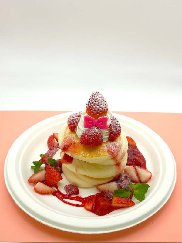 「お空のふわふわいちご パンケーキ」は、展望台をイメージして積み重ねたパンケーキに雲のようなホイップとたっぷり苺をトッピングした一品です。