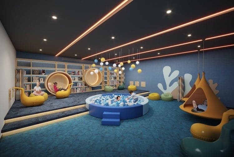「キッズルーム」にはボールプールや知育玩具が、「プレイルーム」には卓球やボードゲームが完備され、雨の日でも笑顔で過ごせる工夫を提案します。