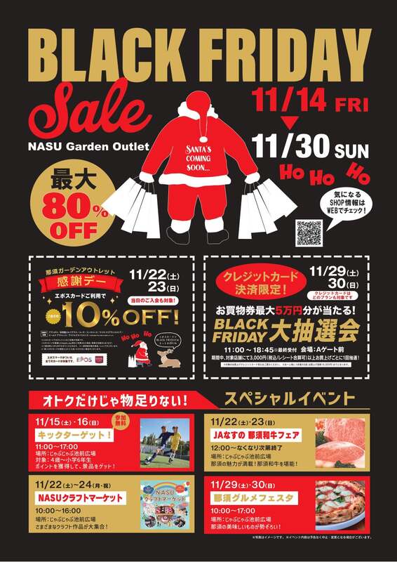 エポスカードの利用で請求時10%OFFとなる特別キャンペーンや、クレジットカードでのお支払いで那須ガーデンアウトレットお買物券が当たる大抽選会など、お得なイベントが盛りだくさんです。