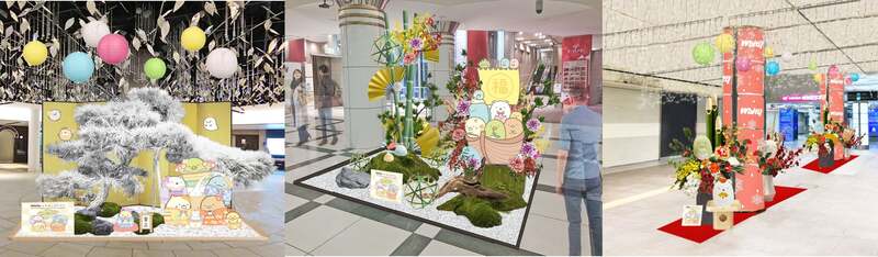 クリスマス期間が終わった後も、2025年12月26日(金)〜2026年1月13日(火)までお正月ビジュアルのすみっコたちと華やかな松やお花が彩る装飾を楽しめます。