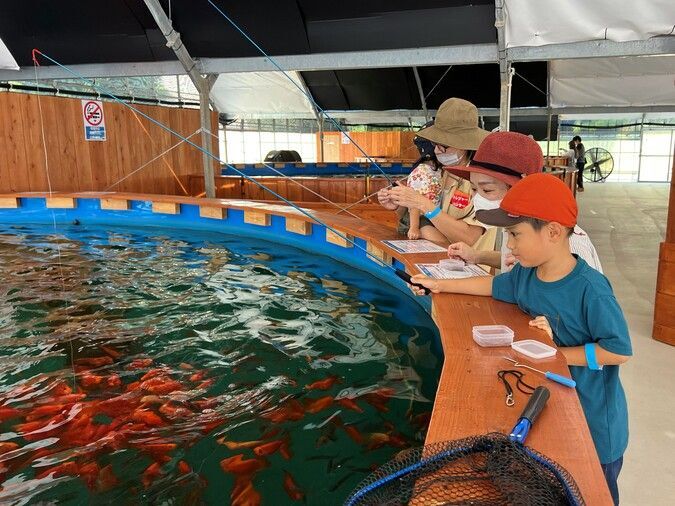 うるま市にある雨の日でも楽しめる大規模釣堀施設です。色とりどりの熱帯魚釣りや、全長100mのトレジャーハンターエリアでパワーストーン探しが体験できます。