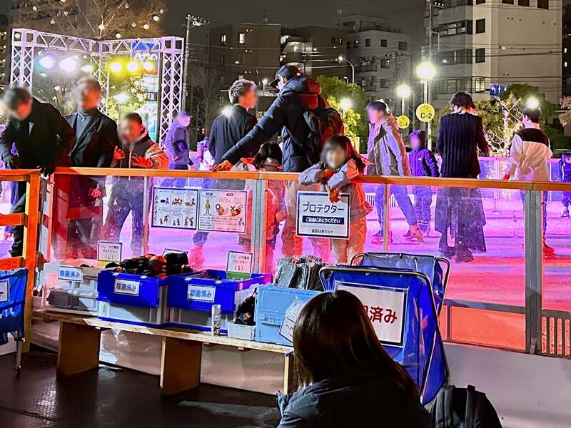 「WONDER RINK」は毎日19:00まで営業します。夕方になるとリンク全体がライトアップされ、冬の夜を彩るきらめくスケートリンクに変わります。