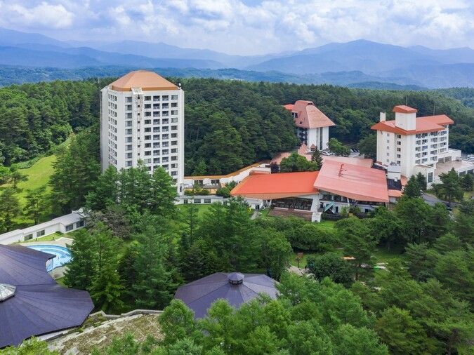 草津温泉街に近い、標高1,200mの自然豊かなリゾートホテルです。温水プールやアミューズメント施設が充実しており、お子様連れでも一日中楽しめます。