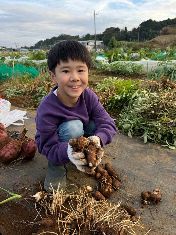 事前予約制の「はじめての"はたけ"」では、道の駅しょうなん近くの畑で、さといも・らっかせい・さつまいもの収穫体験ができます。参加費は各プログラム2,500円で、親子で初めての畑体験を楽しめます。