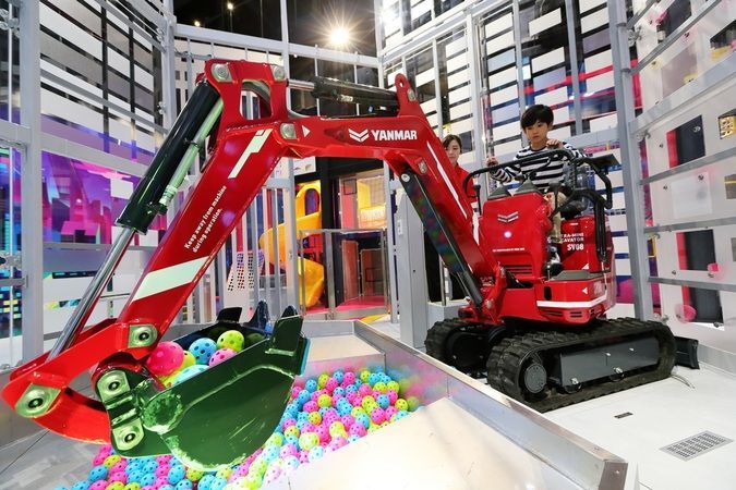 創業者のチャレンジストーリーを体感するプロジェクションマッピングシアターや、エンジンの仕組みを体を使って学べるコンテンツ、画面での農業・漁業体験など、楽しみながら学べる工夫がいっぱい。人気の本物のショベルカー操縦体験もあり、大人も子供も夢中になれます。