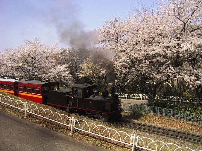 土日祝日にはランドトレインで、広い園内を移動できます。